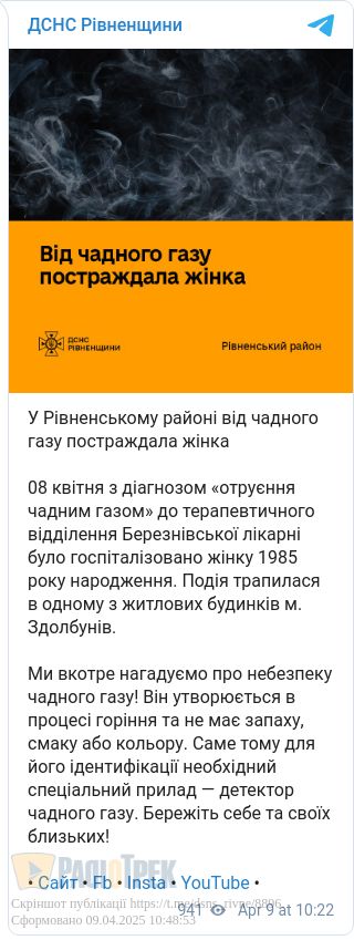 Нагадуємо, що основними причинами отруєння чадним газом є відсутність тяги в димових та вентиляційних каналах, недотримання правил безпечного використання газу в побуті та правил безпеки систем газопостачання.