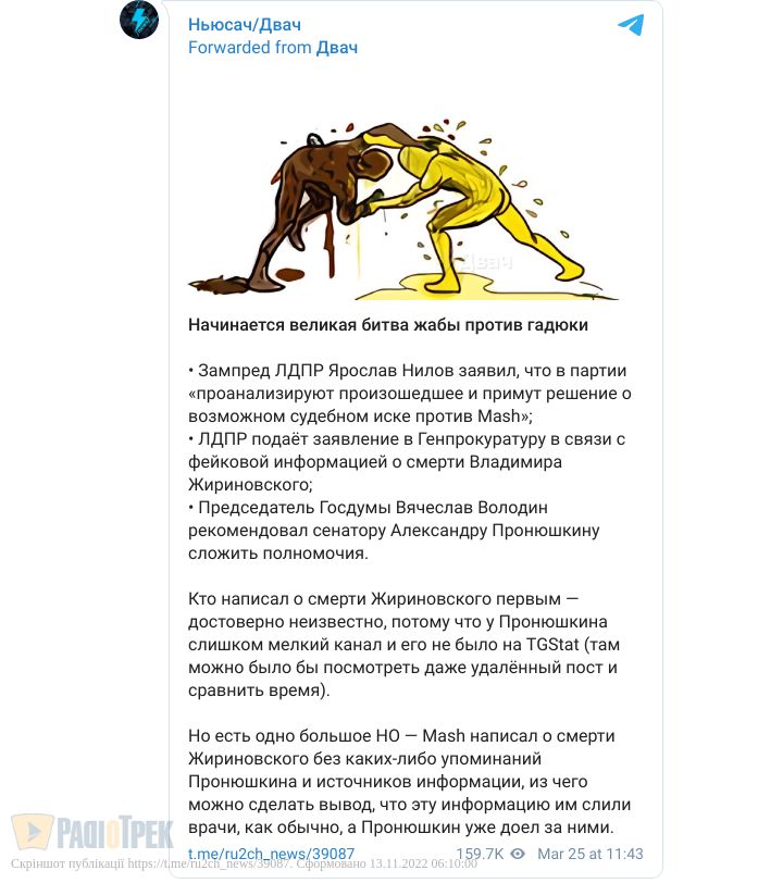 Представники ж ЛДПР регулярно повідомляли, що їхній лідер іде на поправку.