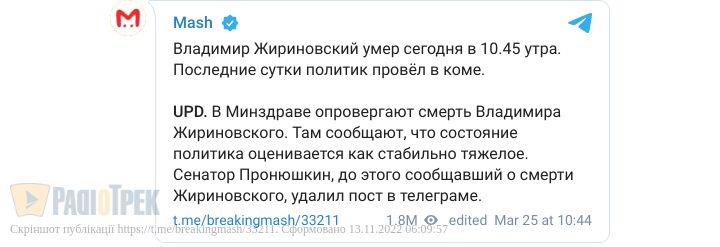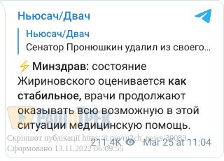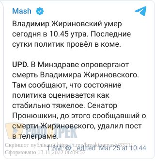 Так, 11 березня вони говорили, що його вивели з медикаментозної ком, що він нібито «притомний і вже отримує документи від помічників».