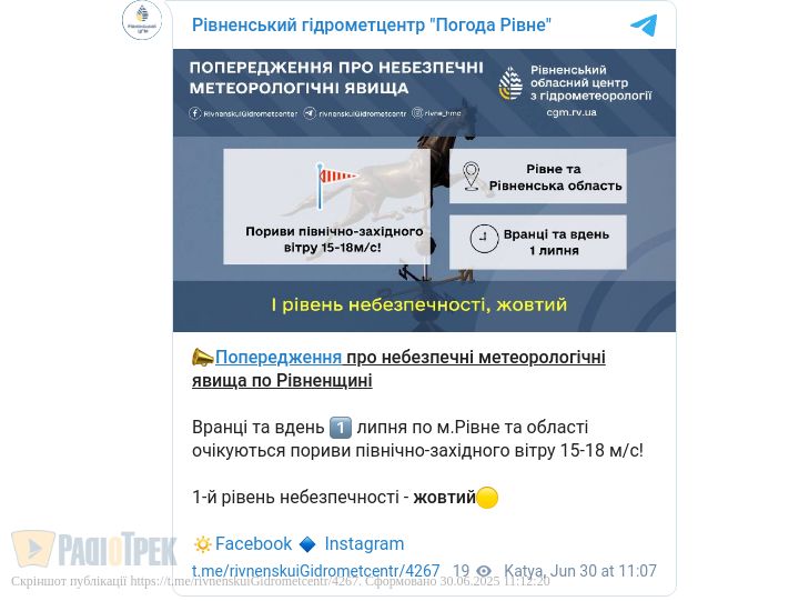 Це І рівень небезпеки, «жовтий», – повідомили у Рівненському гідрометцентрі.