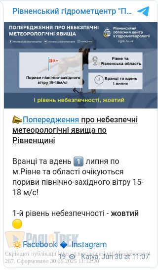Завтра, 1 липня, на Рівненщині буде вітряно.