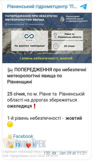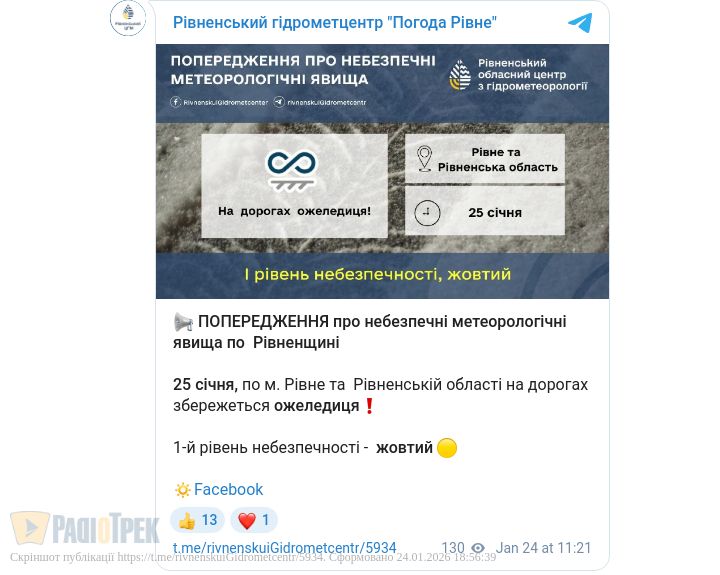 Завтра, 25 січня, на дорогах Рівного та області буде небезпечно.