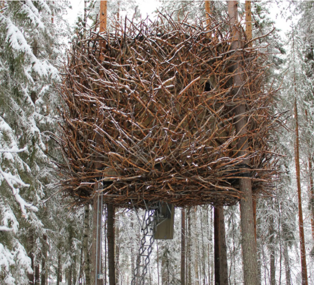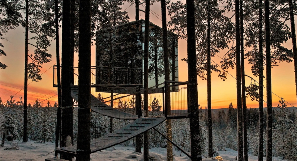 Дев’ять унікальних будиночків. Серед них – «Дзеркальний куб», що зливається з лісом і «Біосфера», прикрашена 350 шпаківнями.