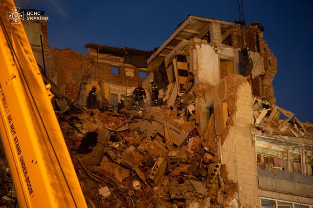 У Тернополі тривають аварійно-рятувальні роботи після російської атаки. Наразі відомо про 25 загиблих (в тому числі 3 дітей) та 92 поранених, з них 18 дітей. Надзвичайники врятували 46 людей, з них 7 дітей.