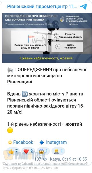 Завтра, 10 жовтня, на Рівненщині очікується хмарна погода з проясненнями.
