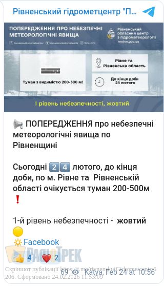 Сьогодні, 24 лютого, у Рівному та області буде туманно.