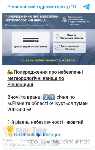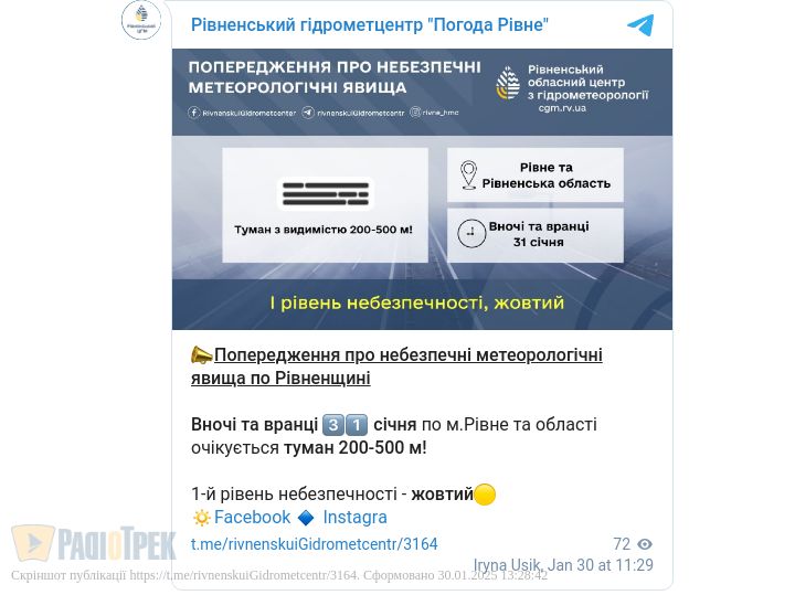 Завтра, 31 січня, у Рівному та області очікуються небезпечні погодні умови.