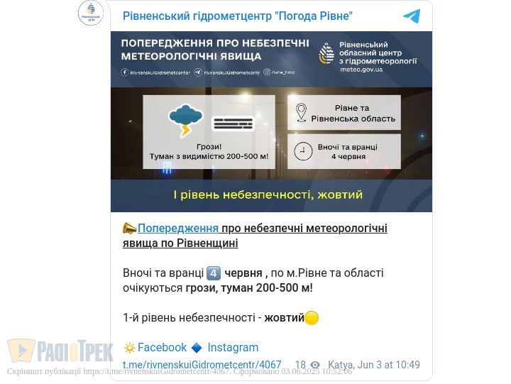 Це І рівень небезпеки, «жовтий», – повідомили в Рівненському гідрометцентрі.