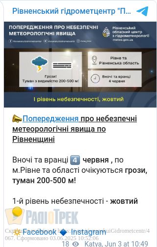 «Жовтий» рівень небезпеки оголосили на Рівненщині