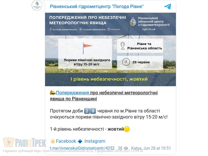 «Жовтий» рівень небезпеки оголосили на Рівненщині