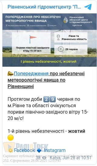 Завтра, 29 червня, Рівне та область охопить сильний вітер.