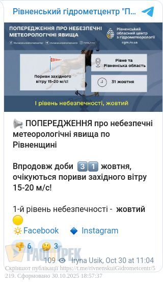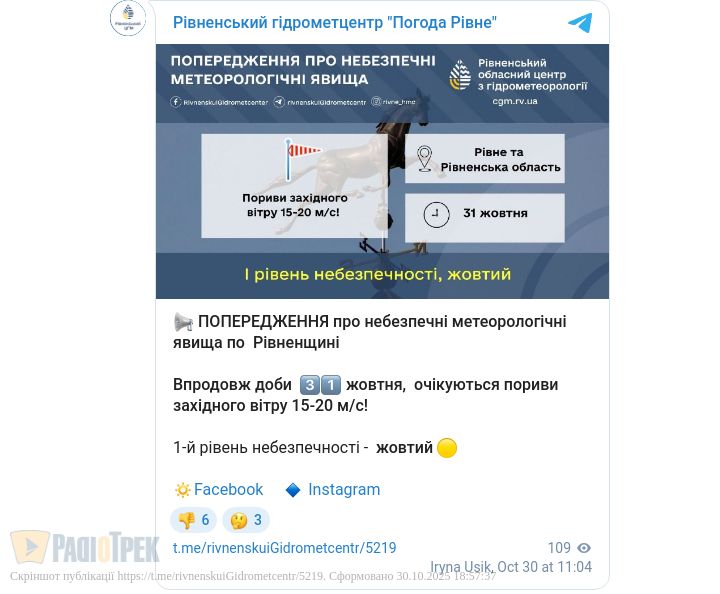 «Жовтий» рівень небезпеки оголосили на Рівненщині