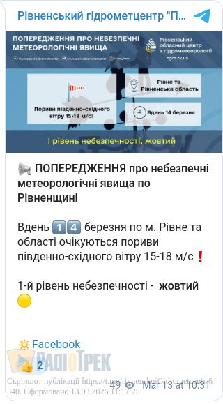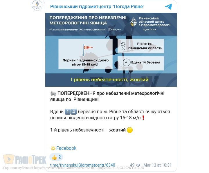 Завтра, 14 березня, у Рівному та області очікується вітряна погода.