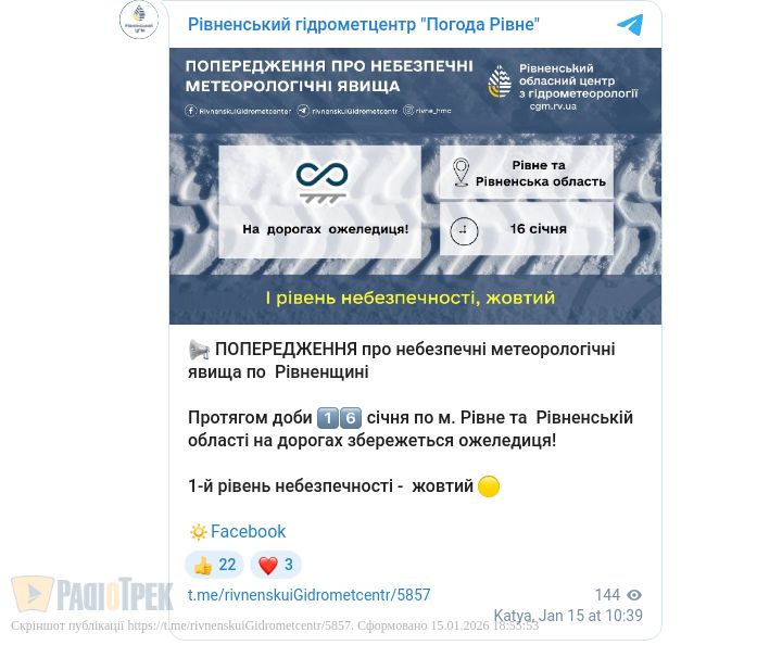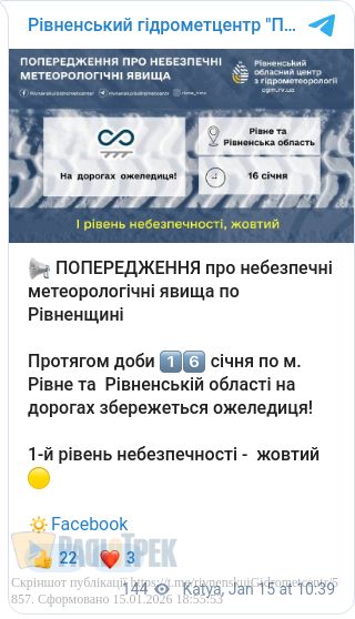 Завтра, 16 січня, на дорогах Рівного та області може бути небезпечно.