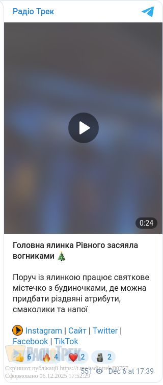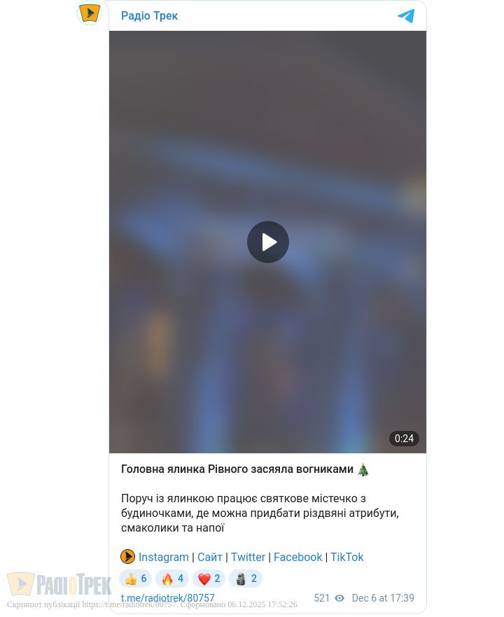 Різдвяно-новорічний сезон у Рівному стартував із засвічення ялинки