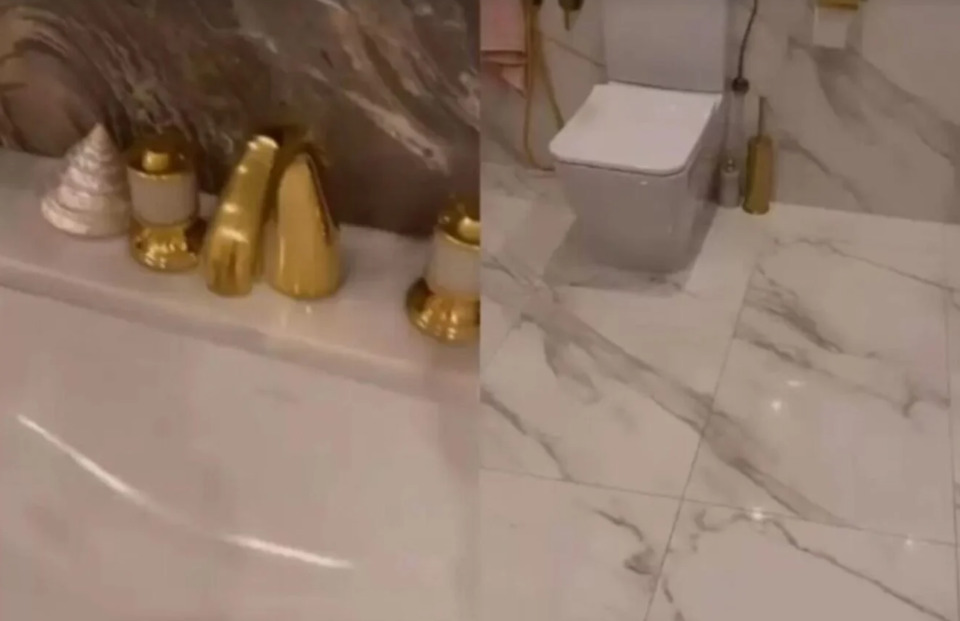 Родзинками стали мармурові поверхні, позолота в деталях, включно зі змішувачами й навіть йоржиком для унітаза.