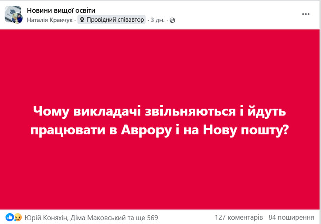 Чому викладачі звільняються і йдуть працювати в Аврору і на Нову пошту?